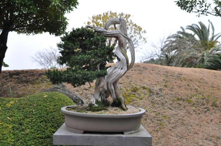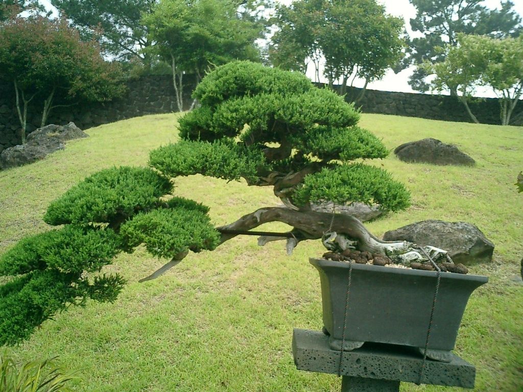 돌담 너머로 굽이치는 연못과 폭포는 고요함 속의 역동성을 보여준다. 맑은 물이 자연석 위를 흘러내리는 소리, 그 소리가 잦아드는 연못의 침묵. 이 정원에서는 소리마저도 하나의 풍경이 된다. 여기에 수백 년 수령을 자랑하는 한국 고유의 특수목 정원수들이 저마다의 자태로 하늘을 향해 가지를 뻗고, 오랜 세월 손질된 분재들이 시간의 무게를 몸에 새긴 채 자리를 지키고 있다.
